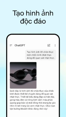 ChatGPT là nguồn cảm hứng không giới hạn và giải pháp cho mọi thách thức. Cần ý tưởng quà tặng sinh nhật độc đáo hay thiết kế thiệp chúc mừng mang đậm dấu ấn cá nhân? AI sẽ khơi nguồn sáng tạo cho bạn. Đối mặt với tình huống khó khăn hay cần lời khuyên cá nhân hóa, ChatGPT sẽ giúp bạn soạn thảo phản hồi tinh tế. Ứng dụng này còn là người bạn đồng hành trong hành trình học tập, từ việc giải thích những khái niệm phức tạp như điện cho các bé đến việc gợi nhớ lại các sự kiện lịch sử quan trọng. Trong môi trường chuyên nghiệp, ChatGPT cũng phát huy tác dụng hiệu quả: hỗ trợ bạn lên ý tưởng cho chiến dịch tiếp thị hay xây dựng kế hoạch kinh doanh vững chắc. Mọi câu hỏi đều được đáp ứng tức thì, ngay cả khi bạn cần một công thức nấu ăn ngon miệng chỉ với vài nguyên liệu trong bếp.