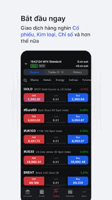 Ứng dụng FxPro là giải pháp giao dịch và quản lý tài chính toàn diện, luôn được cải tiến với các tính năng mới để bạn có thể tiếp cận những công cụ và dữ liệu thị trường cập nhật nhất. FxPro mang đến cơ hội giao dịch hơn 2100 công cụ tài chính đa dạng, bao gồm các kim loại quý như Vàng và Bạc, chỉ số toàn cầu từ Nasdaq đến S&P, hợp đồng tương lai, cùng với hàng ngàn cổ phiếu và chứng khoán từ các thị trường Hoa Kỳ, Vương quốc Anh và EU, cũng như các sản phẩm năng lượng thiết yếu. Giờ đây, trải nghiệm giao dịch trên máy tính bảng còn vượt trội hơn, với chế độ xem mở rộng, biểu đồ nâng cao, khả năng đa nhiệm mượt mà, cho phép bạn kiểm soát hoàn toàn các khoản đầu tư.