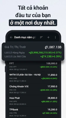 Trải nghiệm sức mạnh của dữ liệu thời gian thực với Investing.com, cung cấp báo giá trực tiếp cho hàng trăm ngàn công cụ tài chính từ hơn 70 sàn giao dịch khắp hành tinh. Theo dõi sát sao mọi biến động của cổ phiếu, chỉ số, trái phiếu, tiền tệ và hàng hóa. Lịch kinh tế của chúng tôi là kim chỉ nam giúp bạn nắm bắt các sự kiện toàn cầu, được cá nhân hóa theo mối quan tâm riêng, đảm bảo bạn không bỏ lỡ bất kỳ yếu tố nào có thể gây chấn động thị trường. Đồng thời, dễ dàng xây dựng danh mục theo dõi và quản lý tài sản cá nhân, hiển thị giá trị đầu tư tức thì, mọi lúc mọi nơi.