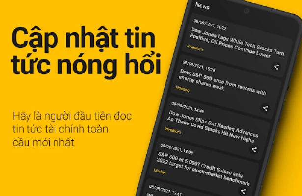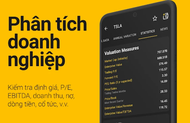 InvestApp cung cấp cái nhìn sâu sắc và dữ liệu tức thời từ các thị trường trên toàn thế giới. Từ cổ phiếu, chỉ số, hợp đồng tương lai, hàng hóa, tiền tệ đến trái phiếu và quyền chọn, mọi thông tin bạn cần đều được cập nhật theo thời gian thực. Khám phá các biểu đồ trực quan, số liệu thống kê chi tiết và thông tin tài chính sâu rộng. Đánh giá cổ phiếu chuyên sâu với dữ liệu thống kê doanh nghiệp như định giá, vốn hóa thị trường, P/E, doanh thu, EBITDA, và khả năng sinh lời. Tính năng so sánh thông minh giúp bạn đối chiếu các mã chứng khoán một cách dễ dàng, hỗ trợ đưa ra quyết định sáng suốt.