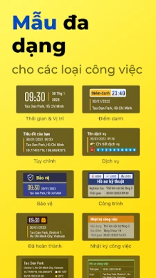 Timemark Camera biến việc theo dõi công việc và chấm công thành một quy trình đơn giản và hiệu quả. Chỉ cần một bức ảnh, bạn có thể dễ dàng ghi nhận thời gian làm việc, bất kể bạn đang ở văn phòng, công trường hay làm việc tại nhà. Khả năng kết hợp dữ liệu ngày giờ và định vị GPS trong một bức ảnh làm cho Timemark Camera trở thành công cụ không thể thiếu cho việc báo cáo, giám sát dự án, quản lý đội nhóm và cả điểm danh từ xa. Hơn thế nữa, đây còn là phương tiện tuyệt vời để chia sẻ những câu chuyện về công việc và cuộc sống của bạn một cách minh bạch, đáng tin cậy, giúp bạn dễ dàng kết nối và truyền tải thông tin đến đồng nghiệp, khách hàng và người thân.
